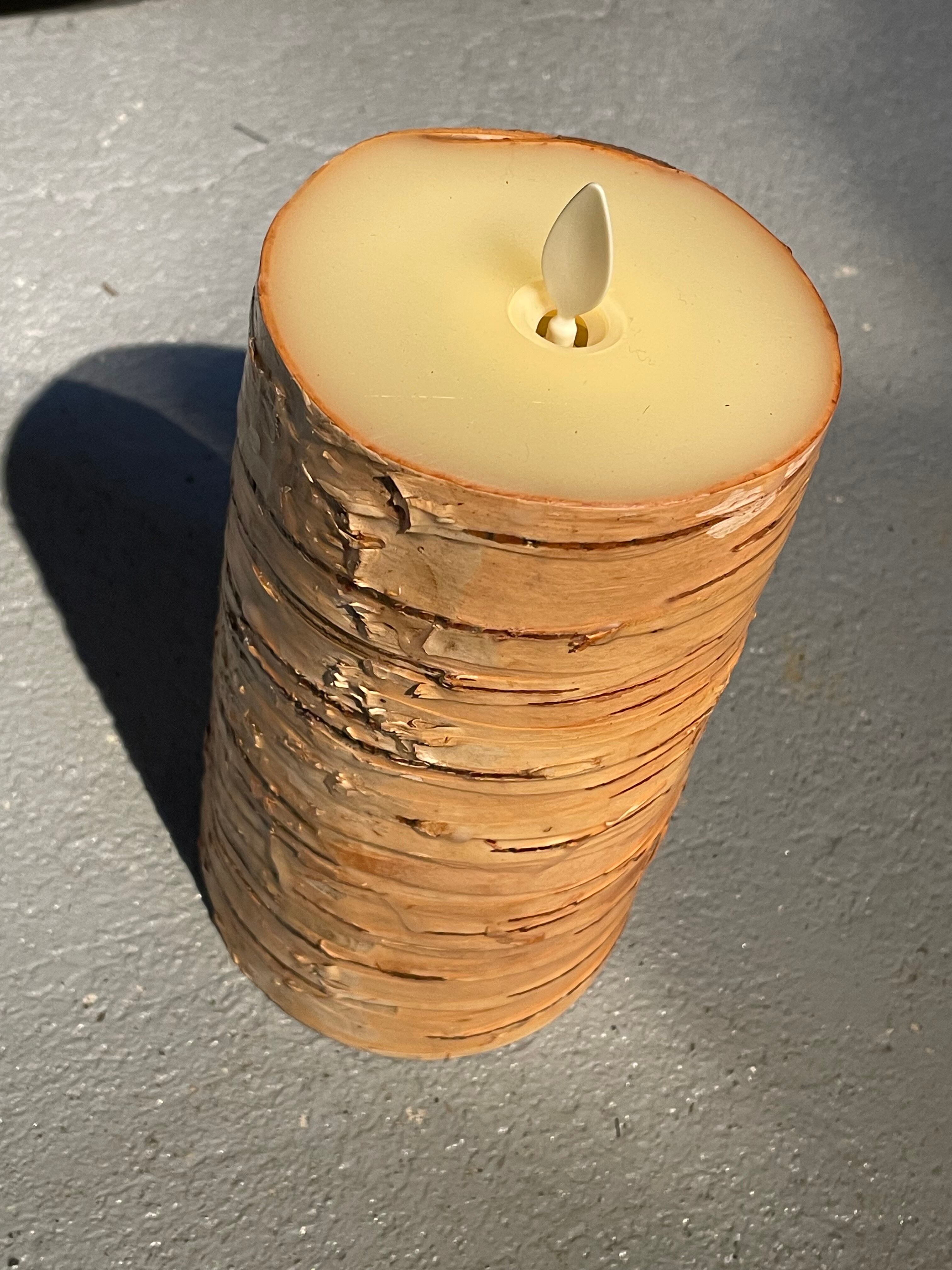 ・リアルな木の質感と穏やかな光が魅力の電池式キャンドル