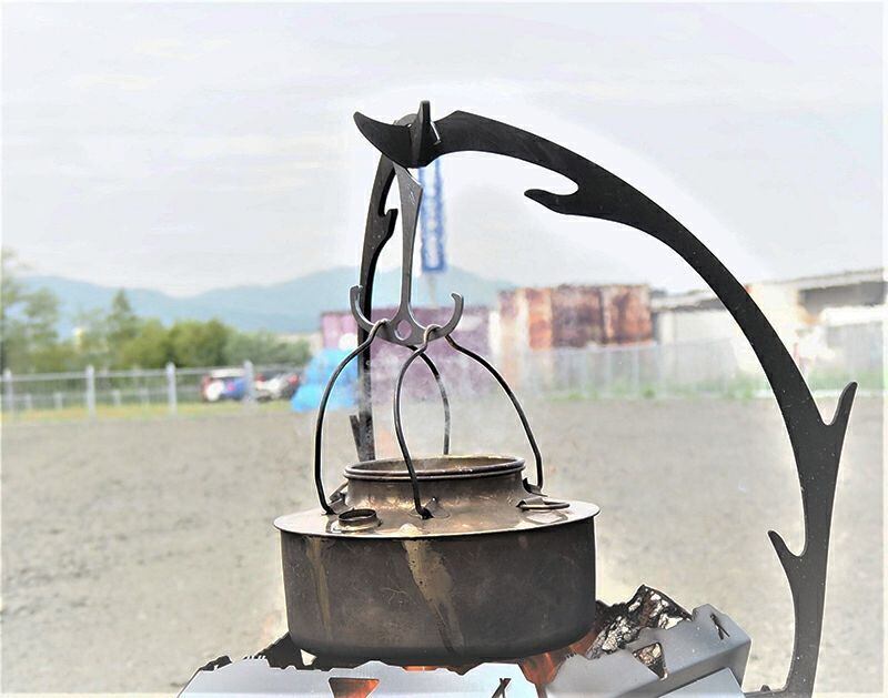 下部に設けたホールにイカリを連結していくことが可能で、焚火を利用した吊り下げ調理時の長さ調整にも一役。