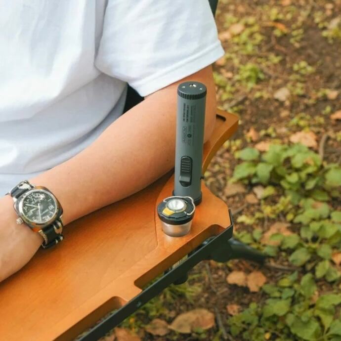 AS2OVバーナや、ゴールゼロをはめておく穴やシェラカップなどが引っ掛けられるフック、また、リクライニングになった時の滑り落ち防止の窪みはそのまま採用しております。